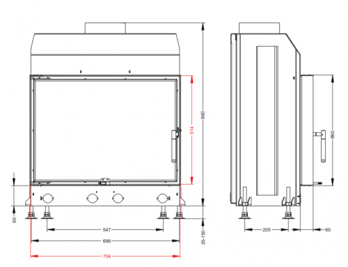 - Диаметр дымохода: 180 мм