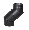 Двухсекционное регулируемое дымоходное колено для поворота на 90º из четырех секций из низколегированной стали Darco. Окрашено термостойкой краской Senotherm. Плазменная сварка.Толщина черной листовой стали 2 мм.