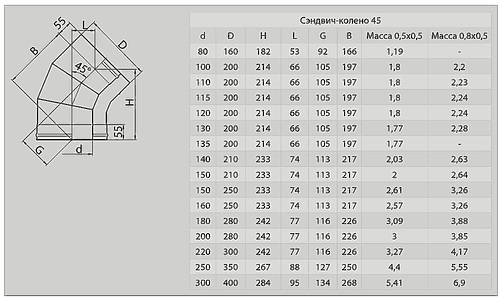 Колено (отвод) - предназначено для изменения направления дымохода. Устанавливается как на вертикальных участках дымохода так и на горизонтальных участках воздуховода, что позволяет смонтировать дымоходную систему практически в любых условиях.