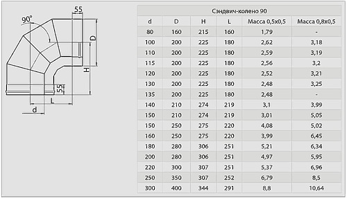 Колено (отвод) - предназначено для изменения направления дымохода, а также для соединения печки (или котла) с основным дымоходом при заднем подключении.