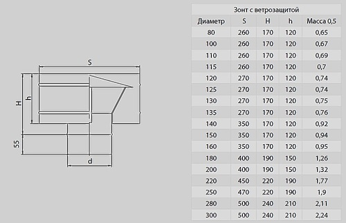 Зонт с ветрозащитой (дефлектор) - завершающий элемент дымоходной системы. Используется для предохранения дымоходного канала от атмосферных осадков и порывов ветра.